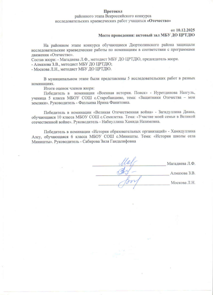 Протокол районного этапа Всероссийского конкурса